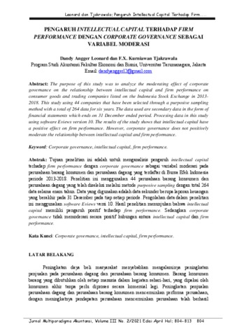 Fx.Kurniawan Tj, Dokumen (2021) Pengaruh Intellectual Capital Terhadap Firm Performance Dengan Corporate Governance Sebagai Variabel Moderasi. Pengaruh Intellectual Capital Terhadap Firm Performance Dengan Corporate Governance Sebagai Variabel Moderasi, 3 (2). pp. 804-813. ISSN 2657-0033