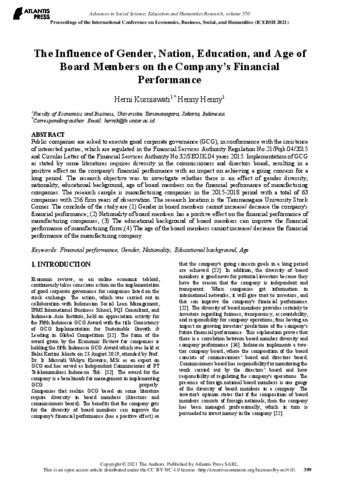 herni kurniawati, Dokumen (2021) The Influence of Gender, Nation, Education, and Age of Board Members on the Company's Financial Performance. The Influence of Gender, Nation, Education, and Age of Board Members on the Company's Financial Performance. ISSN ISSN 2352-5398 / ISBN 978-94-6239-413-1