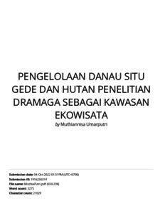 Rahardjo, Parino PENGELOLAAN DANAU SITU GEDE DAN HUTAN PENELITIAN DRAMAGA DI KAWASAN EKOWISATA. PENGELOLAAN DANAU SITU GEDE DAN HUTAN PENELITIAN DRAMAGA DI KAWASAN EKOWISATA.