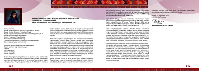 Wisuda, Untar (2021) Sambutan Wisuda Untar ke 78. Universitas Tarumanagara.