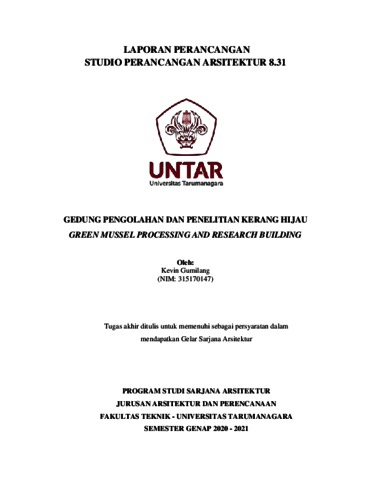Gumilang, Kevin (2021) Gedung pengolahan dan penelitian kerang hijau. Skripsi thesis, Universitas Tarumanagara.