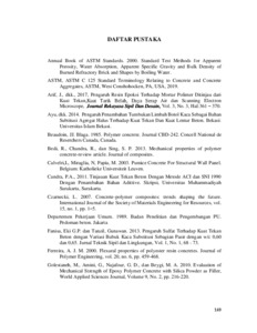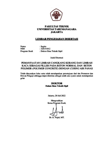 SUGITO, SUGITO (2022) Pemanfaatan Limbah Cangkang Kerang dan Limbah Kaca Sebagai Filler pada Beton Normal dan Beton Polimer (Polymer Concrete) dengan Curing Air Panas. Doctoral thesis, Universitas Tarumanagara.