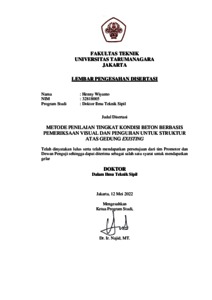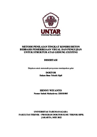 WIYANTO, HENNY (2022) METODE PENILAIAN TINGKAT KONDISI BETON BERBASIS PEMERIKSAAN VISUAL DAN PENGUJIAN UNTUK STRUKTUR ATAS GEDUNG EXISTING. Doctoral thesis, Universitas Tarumanagara.