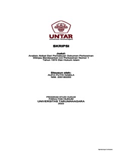 Nabila, Aufa Putri (2022) Analisis Akibat dari Pemalsuan Dokumen Perkawinan Ditinjau Berdasarkan UU Perkawinan Nomor 1 Tahun 1974 dan Hukum Islam. Skripsi thesis, Universitas Tarumanagara.