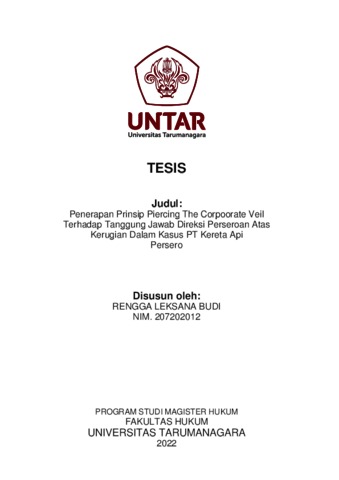 Leksanabudi, Rengga (2022) Penerapan Prinsip Piercing The Corpoorate Veil Terhadap Tanggung Jawab Direksi Perseroan Atas Kerugian Dalam Kasus PT Kereta Api (Persero). Masters thesis, Universitas Tarumanagara.