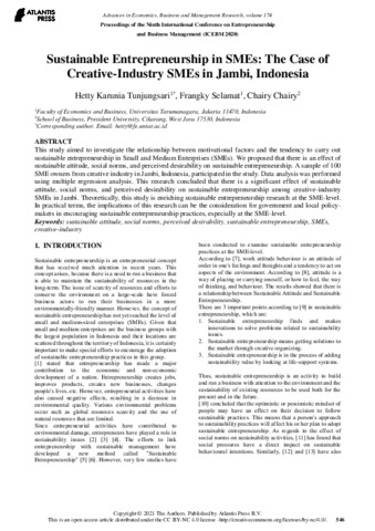 frangky selamat, dokumen (2021) Sustainable entrepreneurship in SMEs_the case of creative industry SMEs in Jambi, indonesia. Sustainable entrepreneurship in SMEs_the case of creative industry SMEs in Jambi, indonesia. ISSN 2352-5428 / 978-94-6239-375-2