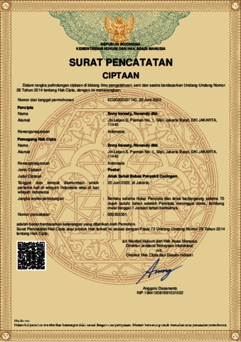 Enny Irawaty, Novendy dkk (2022) URL Dokumen “Poster Anak Sehat Bebas Penyakit Cacingan“. EC00202237740.