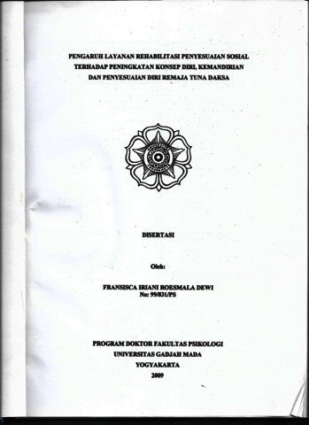 Dewi, Fransisca Iriani Roesmala PENGARUH LAYANAN REHABILITASI PENYESUAIAN SOSIAL TERHADAP PENINGKATAN KONSEP DIRI, KEMANDIRIAN DAN PENYESUAIAN DIRI REMAJA TUNA DAKSA. Disertasi Fransisca Iriana Roesmala Dewi.