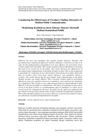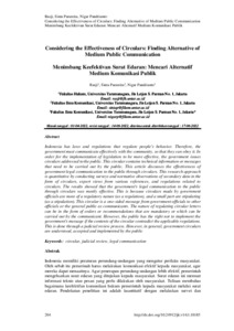 Rasji, Dokumen (2022) Considering the effectiveness of circulars ; finding alternative of medium public communication. Considering the effectiveness of circulars ; finding alternative of medium public communication, 14 (1). pp. 204-219. ISSN 2085-1979
