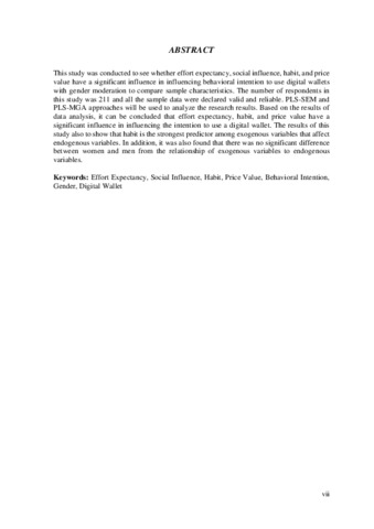 | Uncontrolled Keywords: | Effort Expectancy, Social Influence, Habit, Price Value, Behavioral Intention, Gender, Digital Wallet |