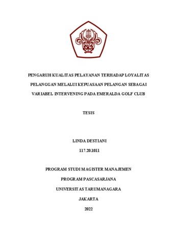 DESTIANI, LINDA (2021) PENGARUH KUALITAS PELAYANAN TERHADAP LOYALITAS PELANGGAN MELALUI KEPUASAN PELANGGAN SEBAGAI VARIABEL INTERVENING PADA EMERALDA GOLF CLUB. Masters thesis, Universitas Tarumanagara.