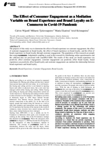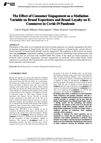 miharni, turnitin (2021) The Effect of Consumer Engagement as a Mediation Variable on Brand Experience and Brand Loyalty on E-Commerce in Covid-19 Pandemic. The Effect of Consumer Engagement as a Mediation Variable on Brand Experience and Brand Loyalty on E-Commerce in Covid-19 Pandemic. ISSN ISSN 2352-5428 / ISBN 978-94-6239-575-6