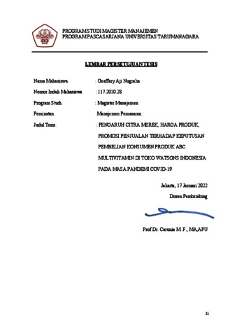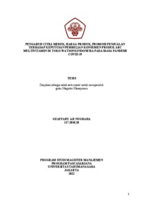 NUGRAHA, GEAFFARY AJI (2021) PENGARUH CITRA MEREK, HARGA PRODUK, PROMOSI PENJUALAN TERHADAP KEPUTUSAN PEMBELIAN KONSUMEN PRODUK ABC MULTIVITAMIN DI TOKO WATSONS INDONESIA PADA MASA PANDEMI COVID-19. Masters thesis, Universitas Tarumanagara.