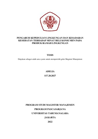 ADELIA, ADELIA (2021) PENGARUH KEPEDULIAN LINGKUNGAN DAN KESADARAN KESEHATAN TERHADAP MINAT BELI KONSUMEN PADA PRODUK RAMAH LINGKUNGAN. Masters thesis, Universitas Tarumanagara.
