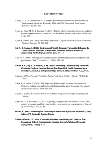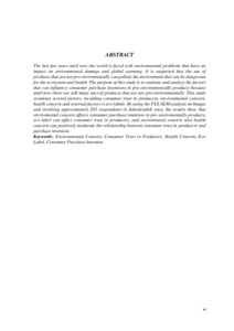 Keywords: Environmental Concern, Consumer Trust in Producers, Health Concern, Eco Label, Consumer Purchase Intention