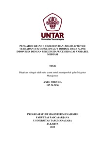 WIBAWA, AXEL (2021) PENGARUH BRAND AWARENESS DAN BRAND ATTITUDE TERHADAP CUSTOMER LOYALTY PRODUK DAMN I LOVE INDONESIA DENGAN PERCEIVED PRICE SEBAGAI VARIABEL MEDIASI. Masters thesis, Universitas Tarumanagara.