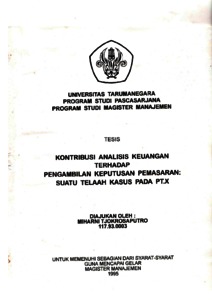 Miharni, Tesis (1995) Kontribusi analisis keuangan terhadap pengambilan keputusan pemasaran : suatu telaah kasus pada PT.X. Masters thesis, Univesitas Tarumanagara.