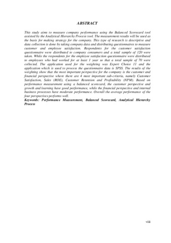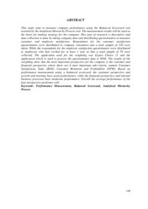 Keywords: Performance Measurement, Balanced Scorecard, Analytical Hierarchy Process