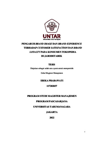 PRABAWATI, ERIKA (2021) PENGARUH BRAND IMAGE DAN BRAND EXPERIENCE TERHADAP CUSTOMER SATISFACTION DAN BRAND LOYALTY PADA KONSUMEN TOKOPEDIA DI JABODETABEK. Masters thesis, Universitas Tarumanagara.