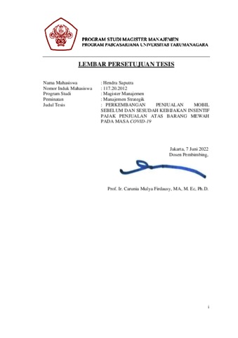 | Uncontrolled Keywords: | Tax Incentive, Consumer Behavior, Car Sales, Covid-19, Indonesia Automotive Industry. |