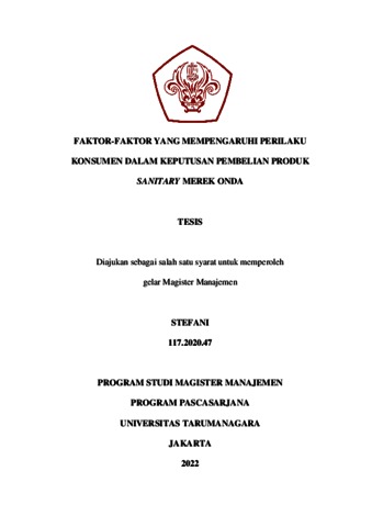 STEFANI, STEFANI (2021) FAKTOR-FAKTOR YANG MEMPENGARUHI PERILAKU KONSUMEN DALAM KEPUTUSAN PEMBELIAN PRODUK SANITARY MEREK ONDA. Masters thesis, Universitas Tarumanagara.