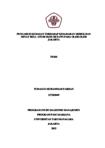 FARHAN, TUBAGUS MUHAMMAD (2021) PENGARUH KEMASAN TERHADAP KESADARAN MEREK DAN MINAT BELI : STUDI IKON BETAWI PADA OLEH-OLEH JAKARTA. Masters thesis, Universitas Tarumanagara.