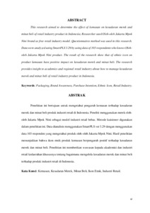 Jakarta Mpok Nini product. The result of the research show that of ethnic icon on product kemasan have positive impact on kesadaran merek and minat beli. The research provides insight to academics and regional retail industry about how to manage kesadaran merek and minat beli of retail industry product in Indonesia.