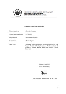 | Uncontrolled Keywords: | Digital Marketing, Perceived Ease Of Use, Product Variety, Purchase Intention, Purchase Decision |