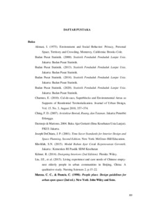 Abstrak – Menurut Badan Pusat Statistik, peningkatan jumlah lansia yang sangat pesat di indonesia disetiap tahunnya membuat presentase lansia terus meningkat hingga 16,5% pada 2035. Untuk mengantisipasi peningkatan jumlah lansia setiap tahun, diperlukan beberapa upaya. Salah satu upaya tersebut seperti memperhatikan penyediaan panti werdha yang layak bagi para lansia. Faktor utama dalam penyediaan panti werdha terjadi karena masalah keamanan. Lansia merupakan tahap akhir pertumbuhan kehidupan manusia yang mengalami perubahan fisik maupun psikososial, dan salah satu aspek penting perubahan itu adalah risiko jatuh yang dapat membahayakan lansia itu sendiri. Risiko jatuh pada lansia dipengaruhi oleh faktor intrinsik, faktor ekstrinsik, dan faktor situasional. Dari persoalan ini dibutuhkan fasilitas panti werdha yang dirancang sesuai dengan kebutuhan bagi para lansia. Pada perancangan ini diperlukan pengetahuan tentang ciri lansia dan diperlukan juga perhatian khusus dari segi penataan layout furniture, bentuk furniture, dan elemen interior lainnya sebagai penunjang desain serta bentuk keselamatan dan kenyamanan penghuni khususnya para lansia. Metode penelitian menggunakan metode kualitatif deskriptif dimana data yang diperoleh dideskripsikan berbentuk narasi sehingga memudahkan pembaca dalam memahami maksud dan tujuan perancangan. Teknik pengumpulan data menggunakan teknik observasi, wawancara, dokumentasi dan studi literatur melalui buku, jurnal, skripsi orang lain, internet dan lainnya. Tujuan perancangan panti werdha ini adalah untuk dapat meningkatkan kesejahteraan kehidupan para warga lansia melalui hunian yang aman dan nyaman. Hasil dari perancangan ini diharapkan dapat menjadi harapan baru bagi penghuninya. Konsep umum yang digunakan dengan memaksimalkan penggunaan elemen-elemen interior yang mengutamakan faktor keselamatan dan keamanan, seperti signage, handrail dan penerapan material yang memiliki kriteria khusus untuk lansia. Desain akhir/ implementasi yang akan divisualisasikan yaitu panti werdha yang menyediakan fasilitas-fasilitas yang dirancang sesuai dengan kebutuhan penghuni panti werdha khususnya bagi para lansia. Diharapkan hasil dari rancangan dapat meningkatkan taraf hidup lansia di Panti Werdha Hargo Dedali Surabaya. Kata Kunci: Desain Interior, Lansia, Panti Werdha