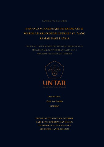 Fadilah, Zulfa Ayu (2022) Perancangan desain interior Panti Werdha Hargo Dedali Surabaya yang ramah bagi lansia (DI - 2315). Skripsi thesis, Universitas Tarumanagara.
