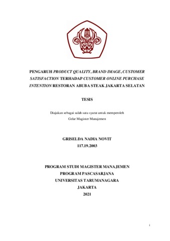 NOVIT, GRISELDA NADIA (2020) PENGARUH PRODUCT QUALITY, BRAND IMAGE, CUSTOMER SATISFACTION TERHADAP CUSTOMER ONLINE PURCHASE INTENTION RESTORAN ABUBA STEAK JAKARTA SELATAN. Masters thesis, Universitas Tarumanagara.