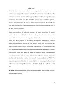 This study aims to examine the effect of product quality, brand image and customer satisfaction on online purchase intention in Abuba Steak restaurant at South Jakarta . The