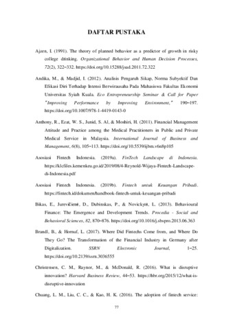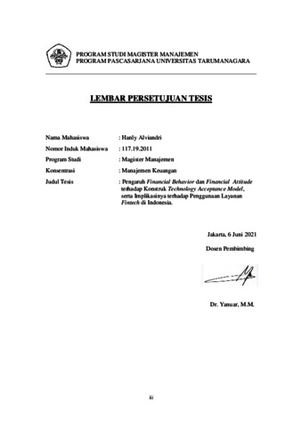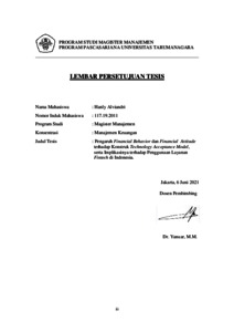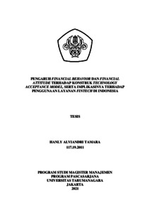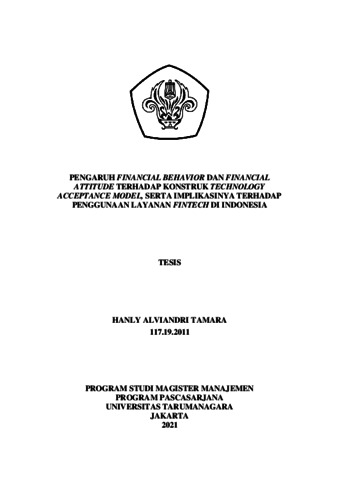 TAMARA, HANLY ALVIANDRI (2020) PENGARUH FINANCIAL BEHAVIOR DAN FINANCIAL ATTITUDE TERHADAP KONSTRUK TECHNOLOGY ACCEPTANCE MODEL, SERTA IMPLIKASINYA TERHADAP PENGGUNAAN LAYANAN FINTECH DI INDONESIA. Masters thesis, Universitas Tarumanagara.