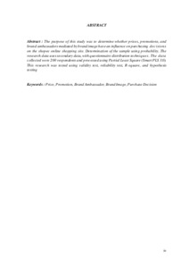 The purpose of this study was to determine whether prices, promotions, and brand ambassadors mediated by brand image have an influence on purchasing decisions on the shopee online shopping site. Determination of the sample using probability. The research data uses secondary data, with questionnaire distribution techniques. The data collected were 200 respondents and processed using Partial Least Square (Smart PLS 3.0). This research was tested using validity test, reliability test, R-square, and hypothesis