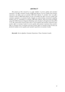 The purpose of this research is to verify whether 1) service quality and customer experience can affect customer loyalty of DBS bank Jakarta 2) service quality and customer