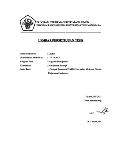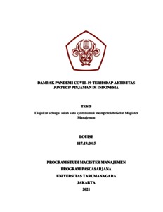 LOUISE, LOUISE (2020) DAMPAK PANDEMI COVID-19 TERHADAP AKTIVITAS FINTECH PINJAMAN DI INDONESIA. Masters thesis, Universitas Tarumanagara.