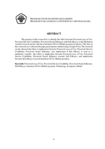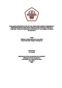 SETIAWAN, SETIAWAN (2020) PENGARUH PERCEIVED EASY OF USE, PERCEIVED SERVICE CREDIBILITY, PERCEIVED SOCIAL INFLUENCE DENGAN SELF EFFICACY SEBAGAI VARIABEL MEDIASI TERHADAP INTENTION OF USE MOBILE PAYMENT DI JAKARTA. Masters thesis, Universitas Tarumanagara.