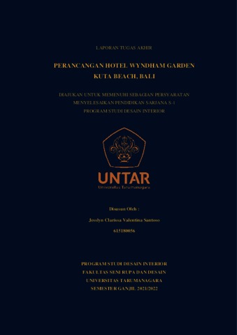 Santoso, Jesslyn Clarissa Valentina (2022) Perancangan interior Hotel Wyndham Garden Kuta Beach, Bali (DI - 2307). Skripsi thesis, Universitas Tarumanagara.