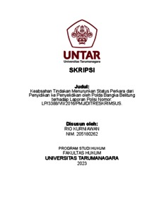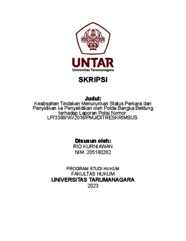 Kurniawan, Rio (2022) Keabsahan Tindakan Menurunkan Status Perkara dari Penyidikan ke Penyelidikan oleh Polda Bangka Belitung terhadap Laporan Polisi Nomor: LP/3388/VII/2016/PMJ/DITRESKRIMSUS . Skripsi thesis, Universitas Tarumanagara.