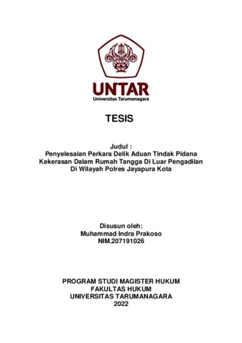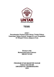 Prakoso, Muhammad Indra (2022) Penyelesaian perkara delik aduan tindak pidana kekerasan dalam rumah tangga di luar pengadilan di wilayah Polres Jayapura Kota. Masters thesis, Universitas Tarumanagara.