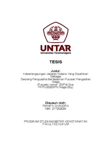 Chandra, Fianita (2022) Keberlangsungan Jabatan Notaris Yang Dipailitkan Sebagai Seorang Pengusaha Berdasarkan Putusan Pengadilan Niaga (Putusan Nomor. 20/Pdt.Sus-PKPU/2020/PN.Niaga.Sby). Masters thesis, Universitas Tarumanagara.