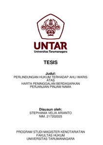 Arianto, Stephania Velia (2022) Perlindungan Hukum Terhadap Ahli Waris Atas Harta Peninggalan Berdasarkan Perjanjian Pinjam Nama. Masters thesis, Universitas Tarumanagara.