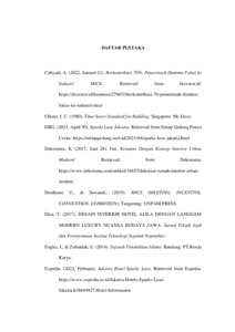 Pada Industri perhotelan, setelah sempat mengalami kemunduran, kini tingkat okupansi hotel mulai membaik, hal ini dikarenakan adanya pelonggaran mobilitas masyarakat selama PPKM. Hal ini disebabkan oleh adanya new normal dan vaksinasi, sehingga masyarakat mulai beraktivitas ditempat-tempat umum, salah satunya yaitu berkunjung, melakukan aktivitas, berlibur, dan menginap di hotel. Sebagai salah satu unsur industri pariwisata, keberadaan hotel sangatlah penting untuk mendukung kemajuan pariwisata suatu daerah. MICE yang merupakan perpaduan antara perjalanan wisata dan bisnis memberikan kontribusi sebesar 70% pada perekonomian daerah. Hotel sebagai bangunan komersial diharapkan memiliki fasilitas yang dapat mendukung perjalanan wisata dan kegiatan bisnis untuk memenuhi kebutuhan dan kepuasan pada tamu. Produk yang baik dan pelayanan yang baik merupakan strategi dalam memberikan kepuasan pada tamu. Salah satu contoh produk hotel adalah desain interior. Oleh karena itu perlu untuk mendesain interior hotel yang menarik dan mampu membuat tamu merasa nyaman. Di Pecenongan, Jakarta Pusat ada sebuah hotel bisnis berbintang 4 yaitu Sparks Luxe. Nama Sparks berarti ‘perasaan yang kuat’, sementara Luxe mewakili perasaan mewahnya. Konsep Sparks Luxe menyesuaikan dengan energi dari kota Jakarta. Pada 14 Juli 2019, HIM Hospitality melakukan rebranding Hotel Alila Jakarta menjadi Hotel Sparks Luxe Jakarta. Namun, masih belum banyak yang mengenal Sparks Luxe. Dari segi kualitas pelayanan dan fasilitas, dilansir berdasarkan review pada situs travel online, terdapat pengalaman pelanggan yang kurang baik ketika menginap di Hotel Sparks Luxe. Hal ini menyebabkan pelanggan kecewa dan memiliki keluhan. Oleh karena itu perancangan interior Hotel Sparks Luxe ini diperlukan. Perancangan dilakukan dengan menggunakan metode menurut Rosemary Kilmer dan bertujuan untuk mengenalkan Sparks Luxe kepada masyarakat dan menarik minat masyarakat terhadap Hotel Sparks Luxe, menghadirkan fasilitas yang dapat mendukung perjalanan wisata dan kegiatan bisnis, serta agar memiliki tata letak kamar yang baik, hiasan atau dekorasi menarik dan fasilitas yang memadai bagi kenyamanan dan kepuasan pengunjung Sparks Luxe. Kata Kunci: Desain Interior, Hotel Bisnis, Kepuasan Tamu