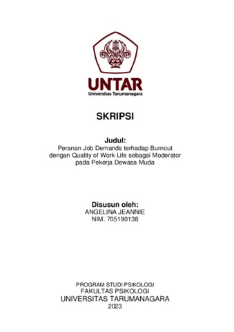 Jeannie, Angelina (2023) Peranan Job Demands Terhadap Burnout Dengan Quality Of Work Life Sebagai Moderator Pada Pekerja Dewasa Muda. Skripsi thesis, Universitas Tarumanagara.
