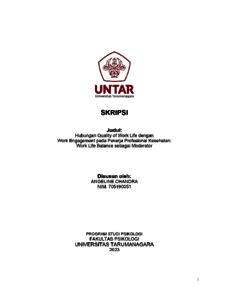 Chandra, Angeline (2023) Hubungan Quality of Work Life dengan Work Engagement pada Pekerja Profesional Kesehatan. Skripsi thesis, Universitas Tarumanagara.
