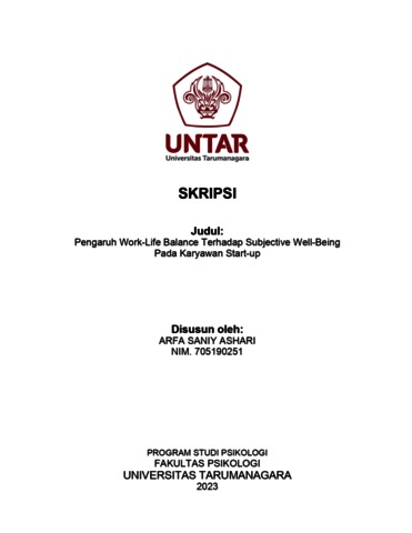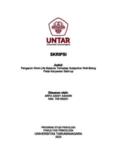 Ashari, Arfa Saniy (2023) Pengaruh Work-Life Balance Terhadap Subjective Well-Being Pada Karyawan Start-up. Skripsi thesis, Universitas Tarumanagara.