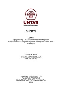 Anakin, Chiara (2023) Upaya Orang Tua Dalam Memberikan Kegiatan Bernyanyi Guna Mengembangkan Kemampuan Bicara Anak Prasekolah. Skripsi thesis, Universitas Tarumanagara.