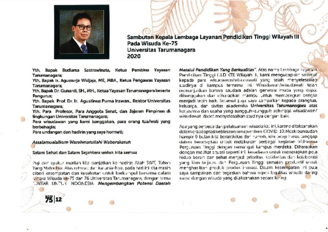 Wisuda, Untar Sambutan Wisuda Untar ke 75. Universitas Tarumanagara.