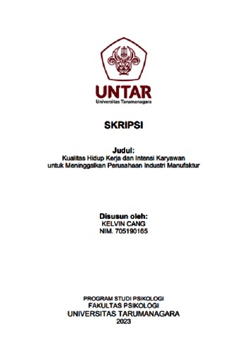 Cang, Kelvin (2023) Kualitas Hidup Kerja dan Intensi Karyawan untuk Meninggalkan Perusahaan Industri Manufaktur. Skripsi thesis, Universitas Tarumanagara.