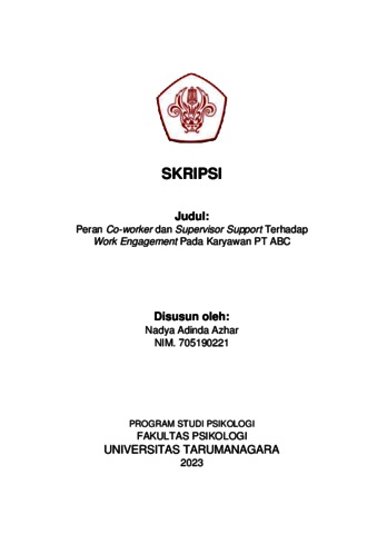 Azhar, Nadya Adinda (2023) Peran Co-worker dan Supervisor Support terhadap Work Engagement Pada Karyawan PT ABC. Skripsi thesis, Universitas Tarumanagara.